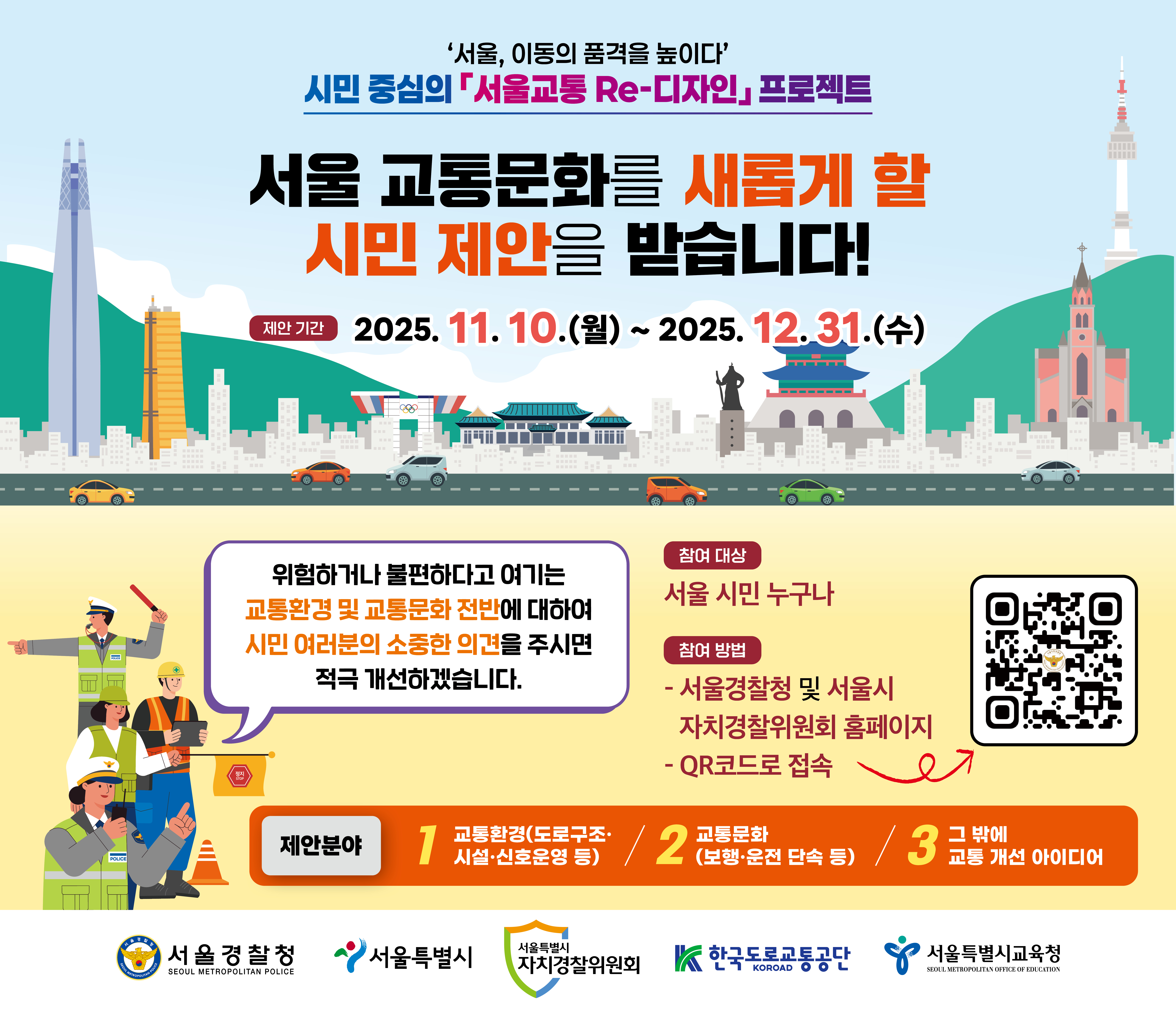 ‘서울, 이동의 품격을 높이다’ 서울 교통문화를 새롭게 할 시민 제안을 받습니다!